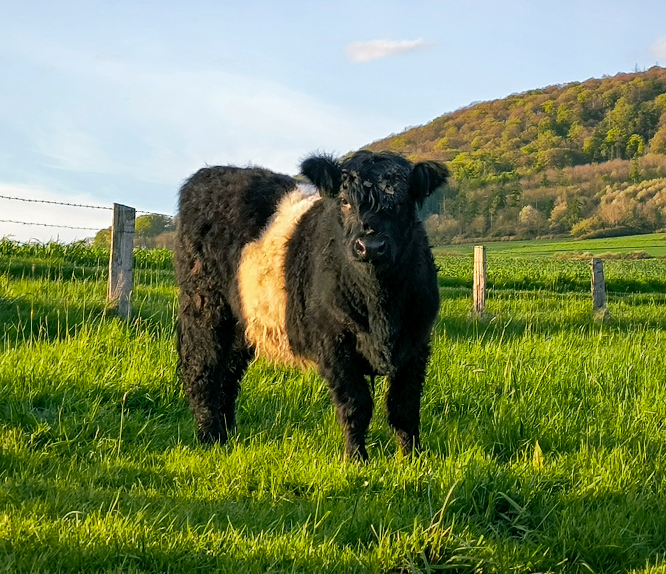Das hat sie aber geschafft und uns danach mit ihrer verspielten und neugierigen Art oft ein Lächeln ins Gesicht gezaubert. Sie wurde zusammen mit unserer Färse Lana abgesetzt. Ans Halfter hat sie sich schnell gewöhnt und lässt sich schon sehr gut führen. Pina hat ein ruhiges und zutrauliches Wesen und freut sich immer über eine Krauleinheit. Auch wenn sie eine eher kleinere Färse ist, finden wir, dass sie ein wunderschönes Belted Galloway ist.