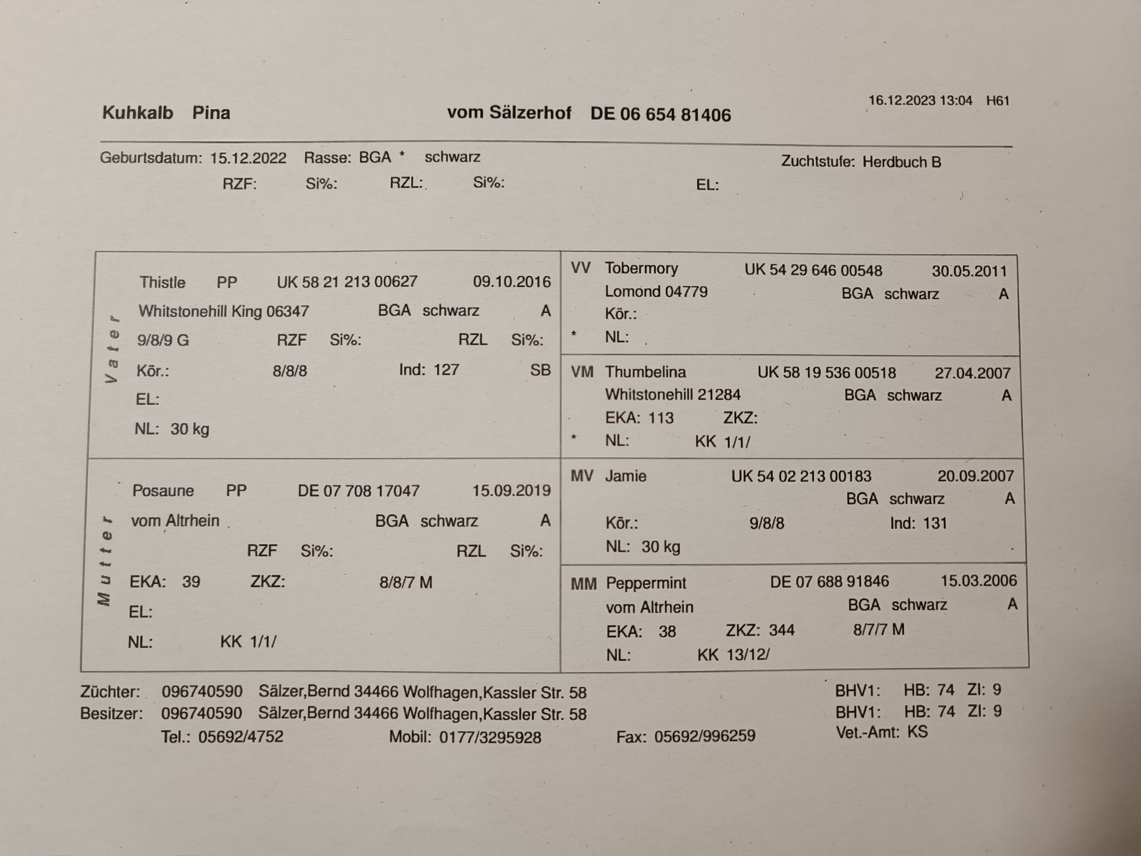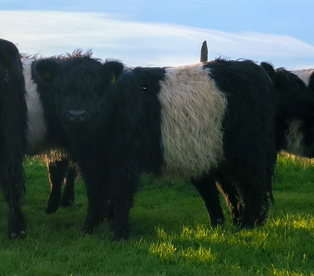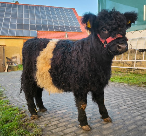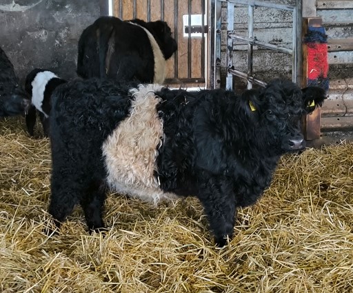 Im März 2025 haben wir sie zusammen mit Färse Pumpkin abgesetzt und sind jetzt dabei sie halfterführig zu machen. Wir finden, dass sie einen sehr schönen, typvollen Körperbau hat und sind gespannt auf ihre weitere Entwicklung.