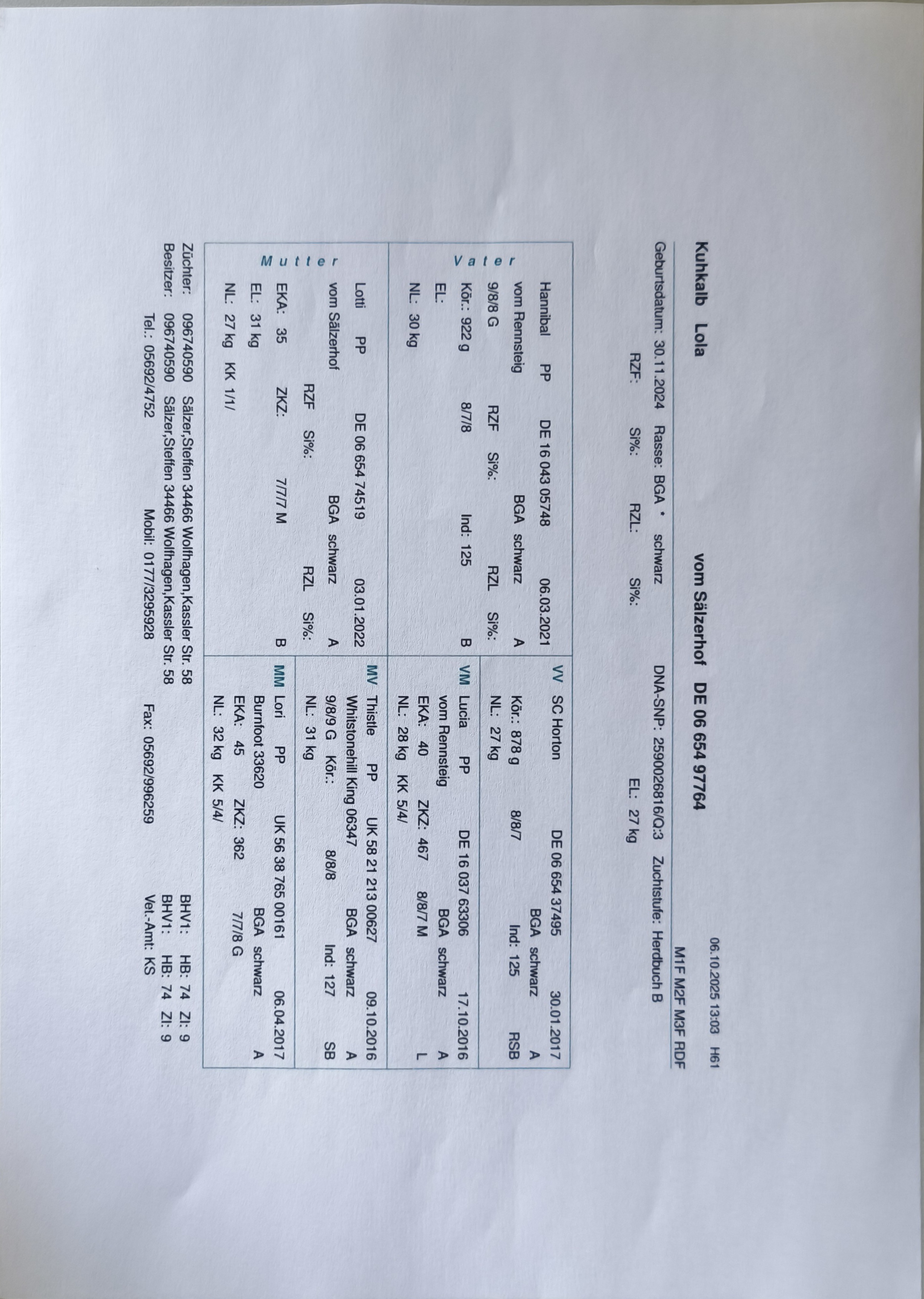 Ihr Vater ist unser Zuchtbulle Hannibal. Die Mutterlinie von Lola ist vollschottischer Abstammung, da der Vater von Lotti unser Zuchtbulle King war und ihre Mutter unsere Zuchtkuh Lori ist.