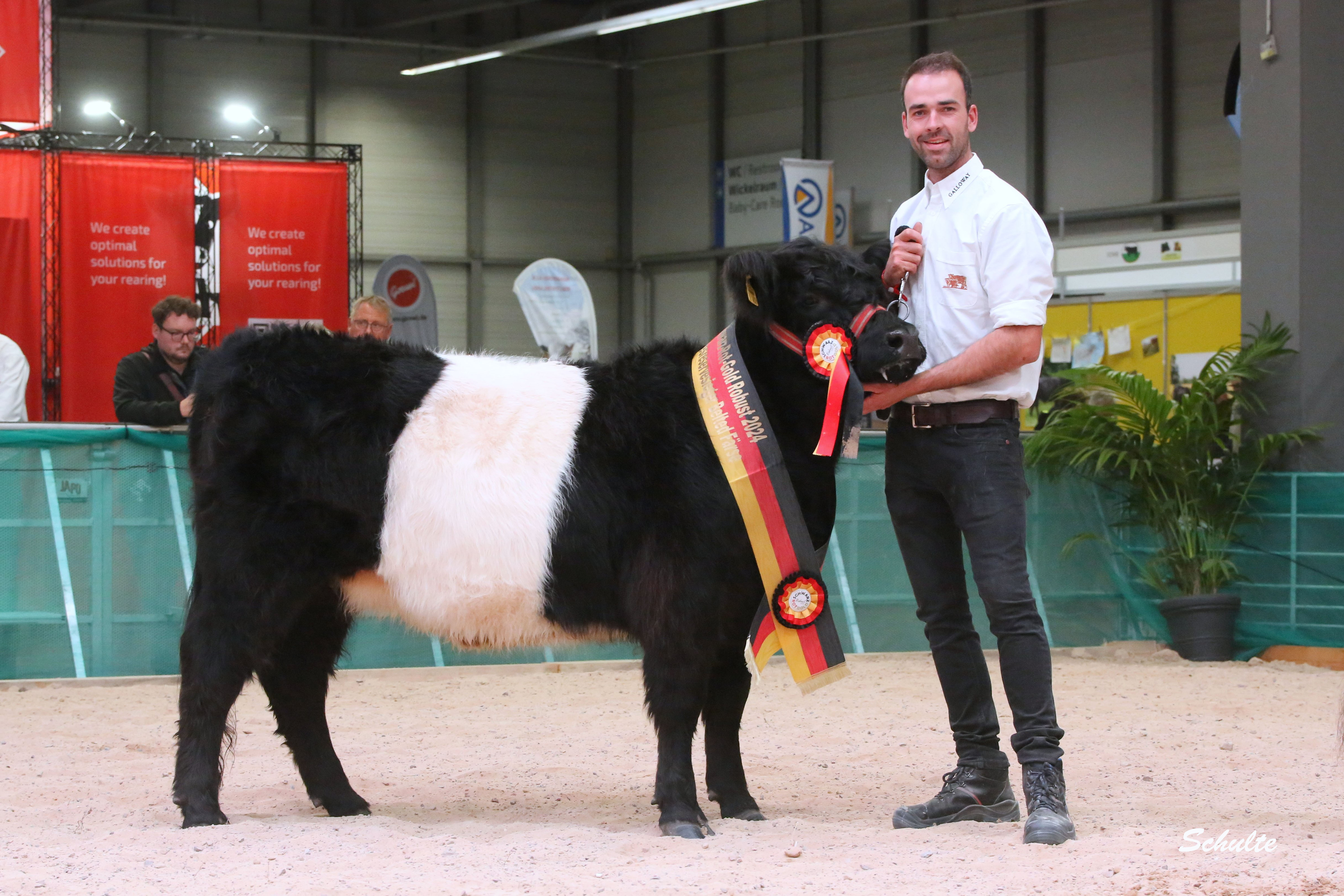 Bei den Grünen Tagen in Erfurt hat Lana den 1. Platz ihrer Klasse belegt und wurde die Reservesiegerin der Belted Färsen 2024.