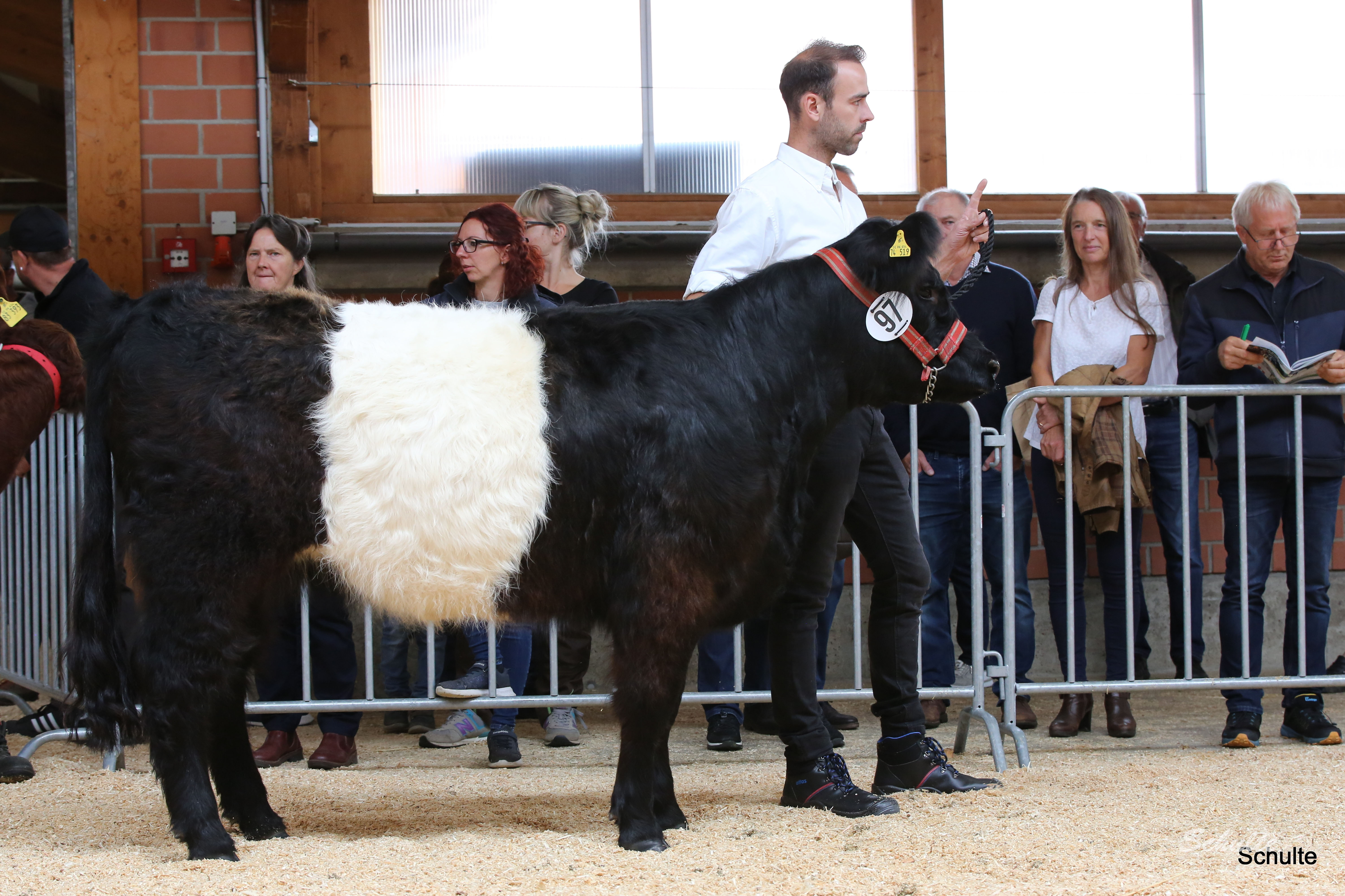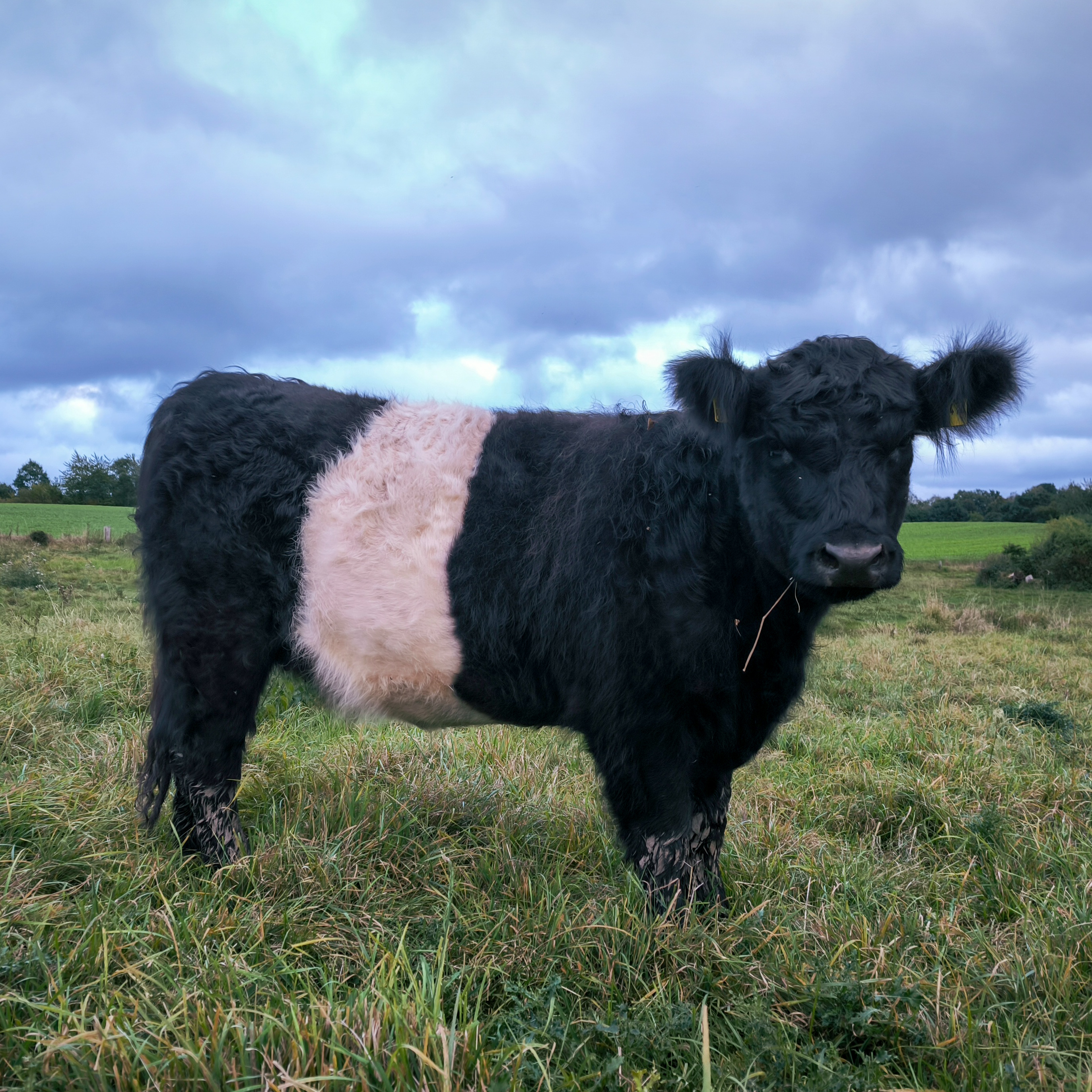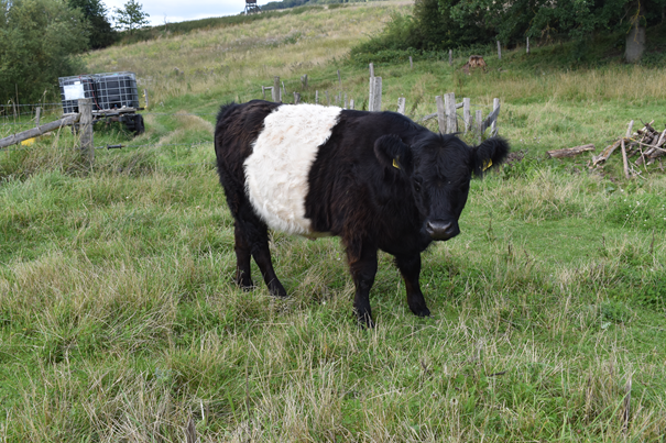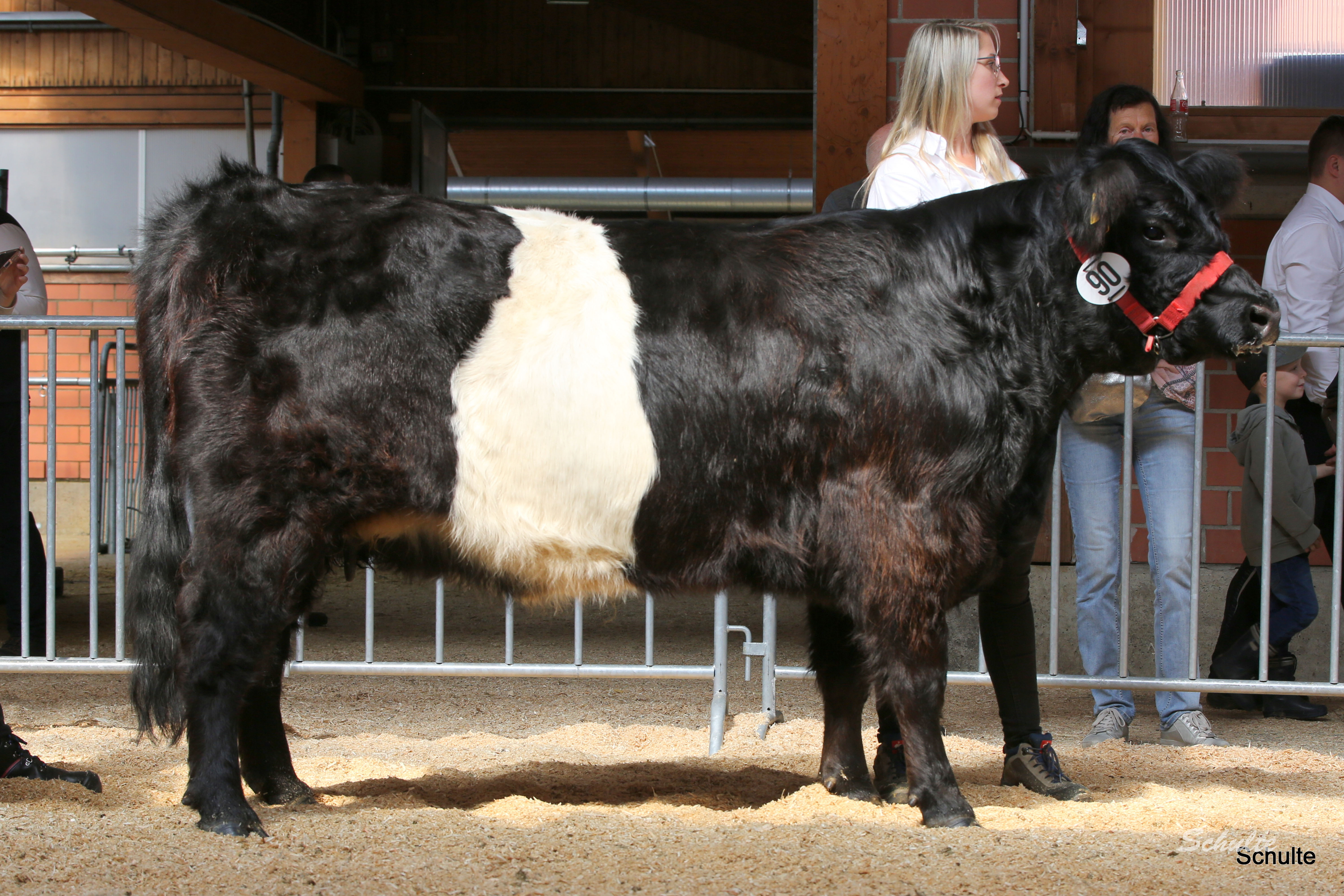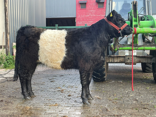 Sie ist eine aufgeweckte und halfterführige Kuh. Bei den Galloway Open 2023 in Alsfeld haben wir sie noch als Färse vorgestellt, wo sie den Reservesieg der Beltie- Färsen errungen hat.
