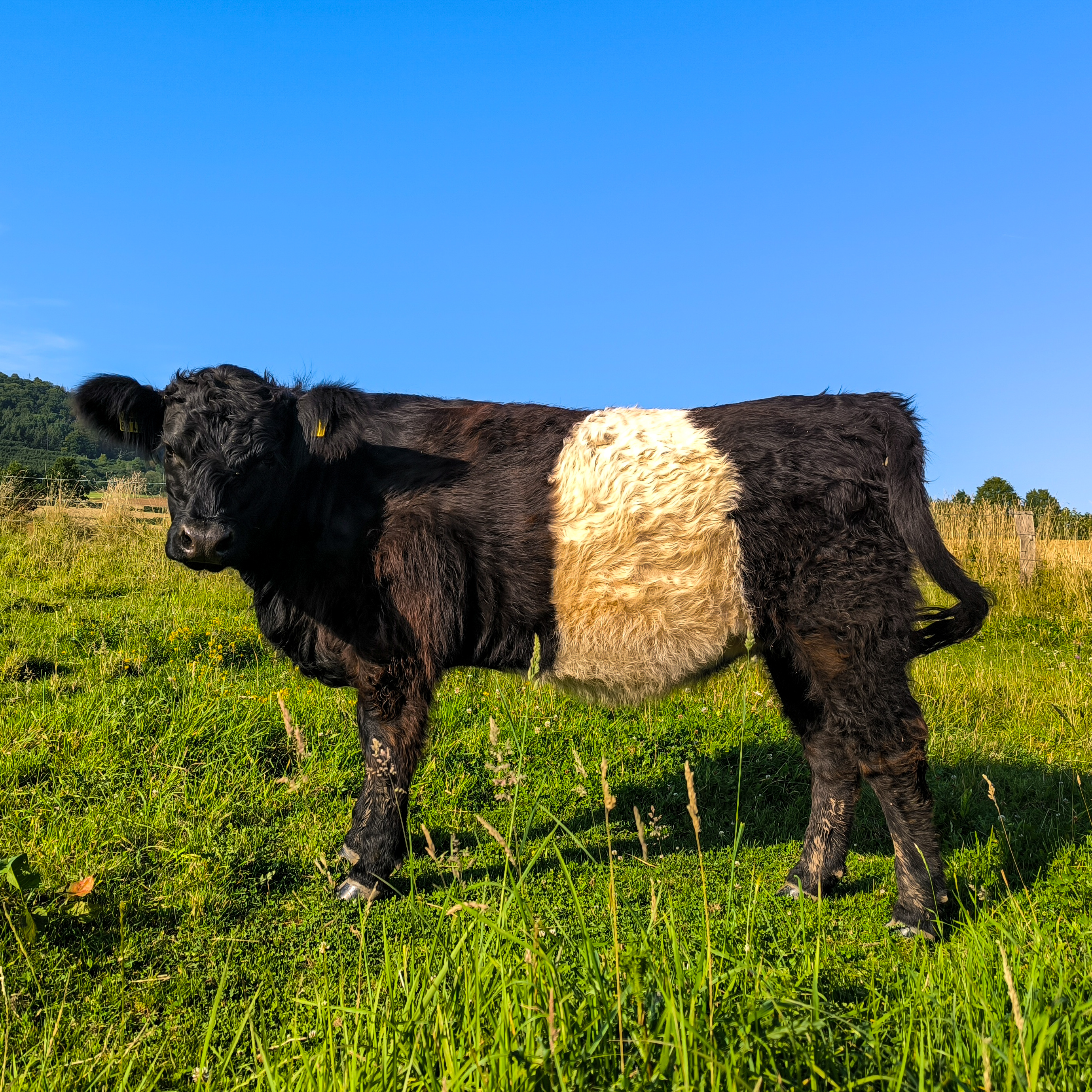 Sie war die einzige red- belted Kuh unserer Herde, bis wir sie leider aufgrund ihres hohen Alters Anfang Januar 2024 einschläfern lassen mussten.