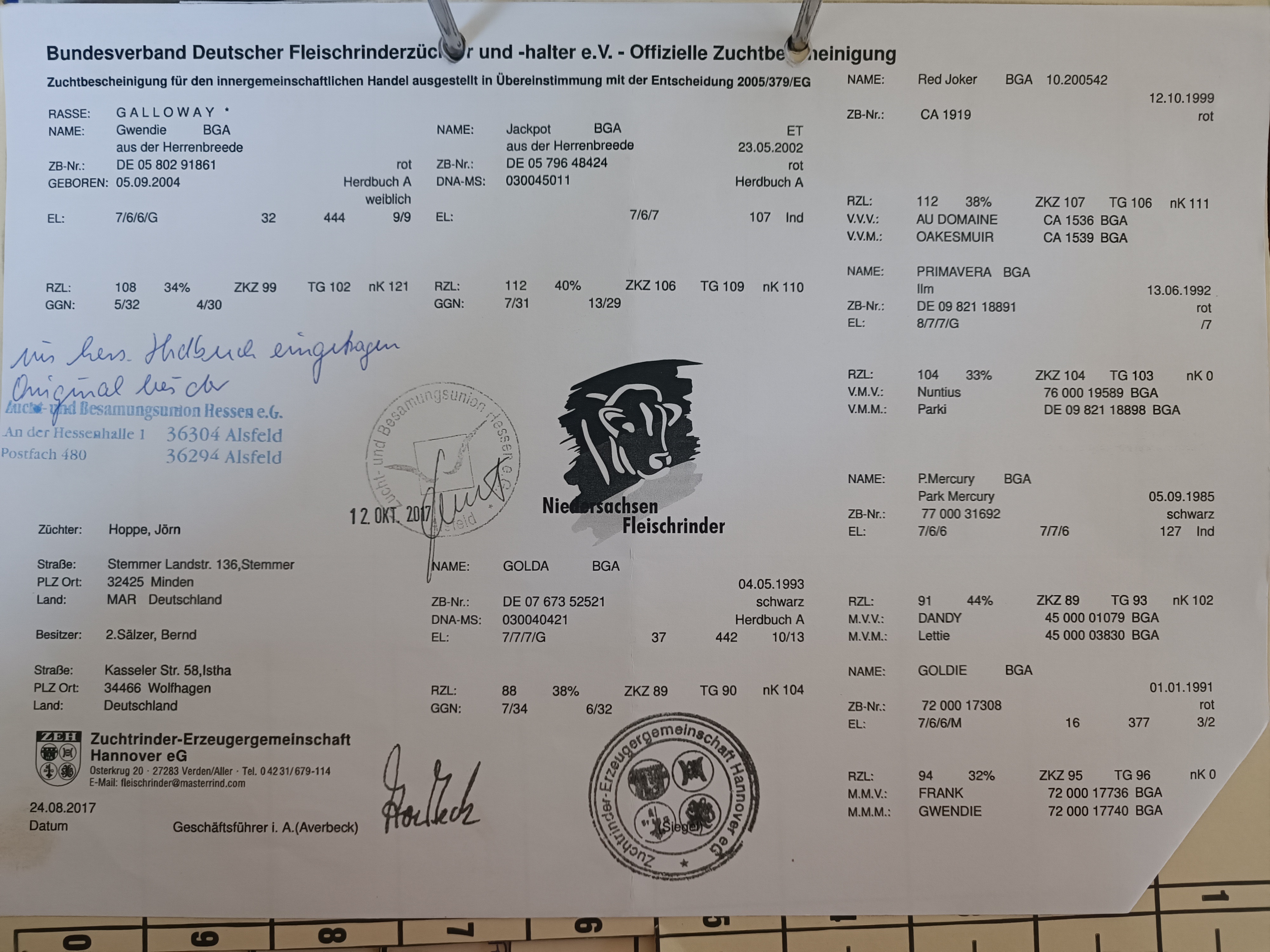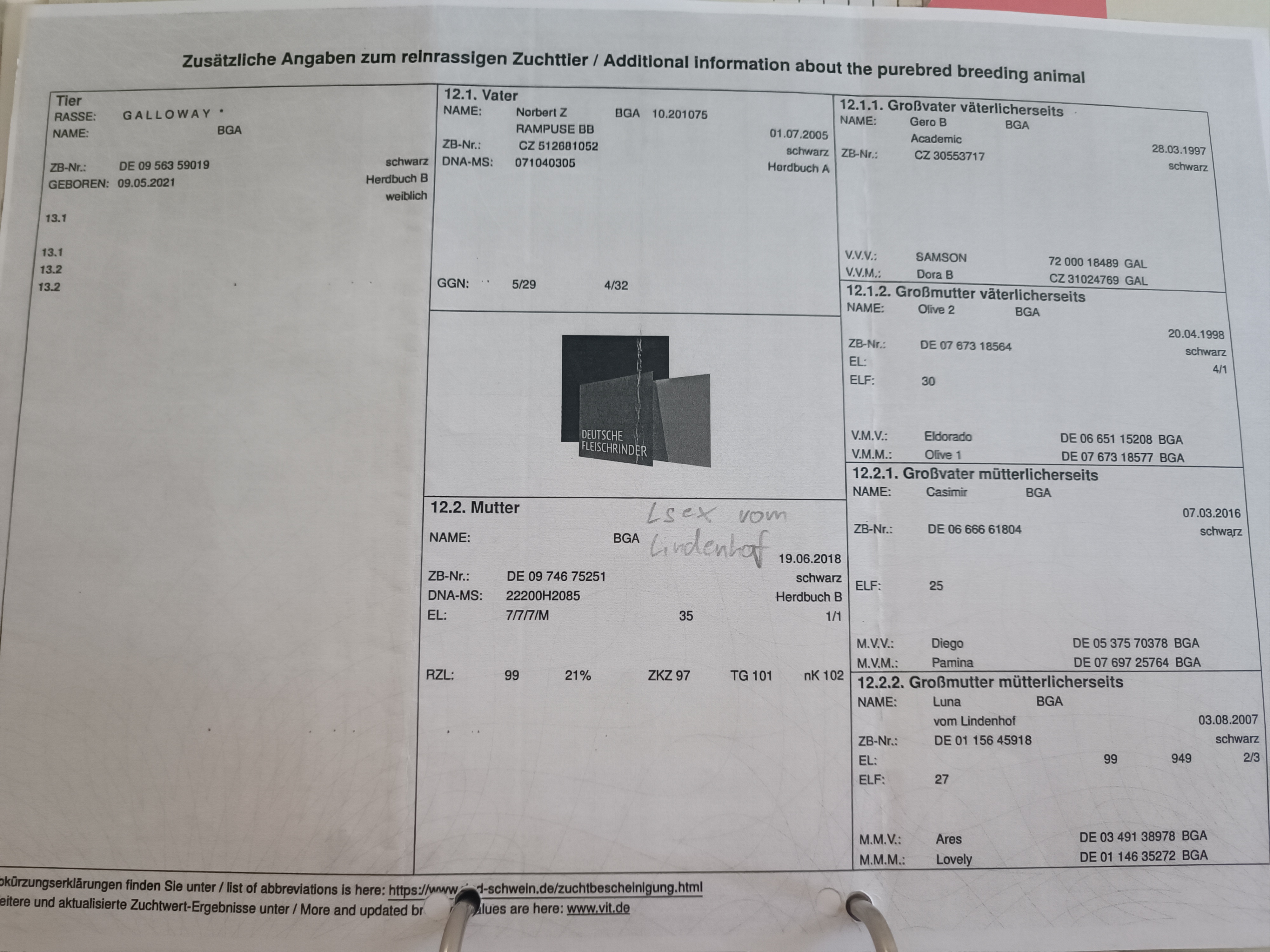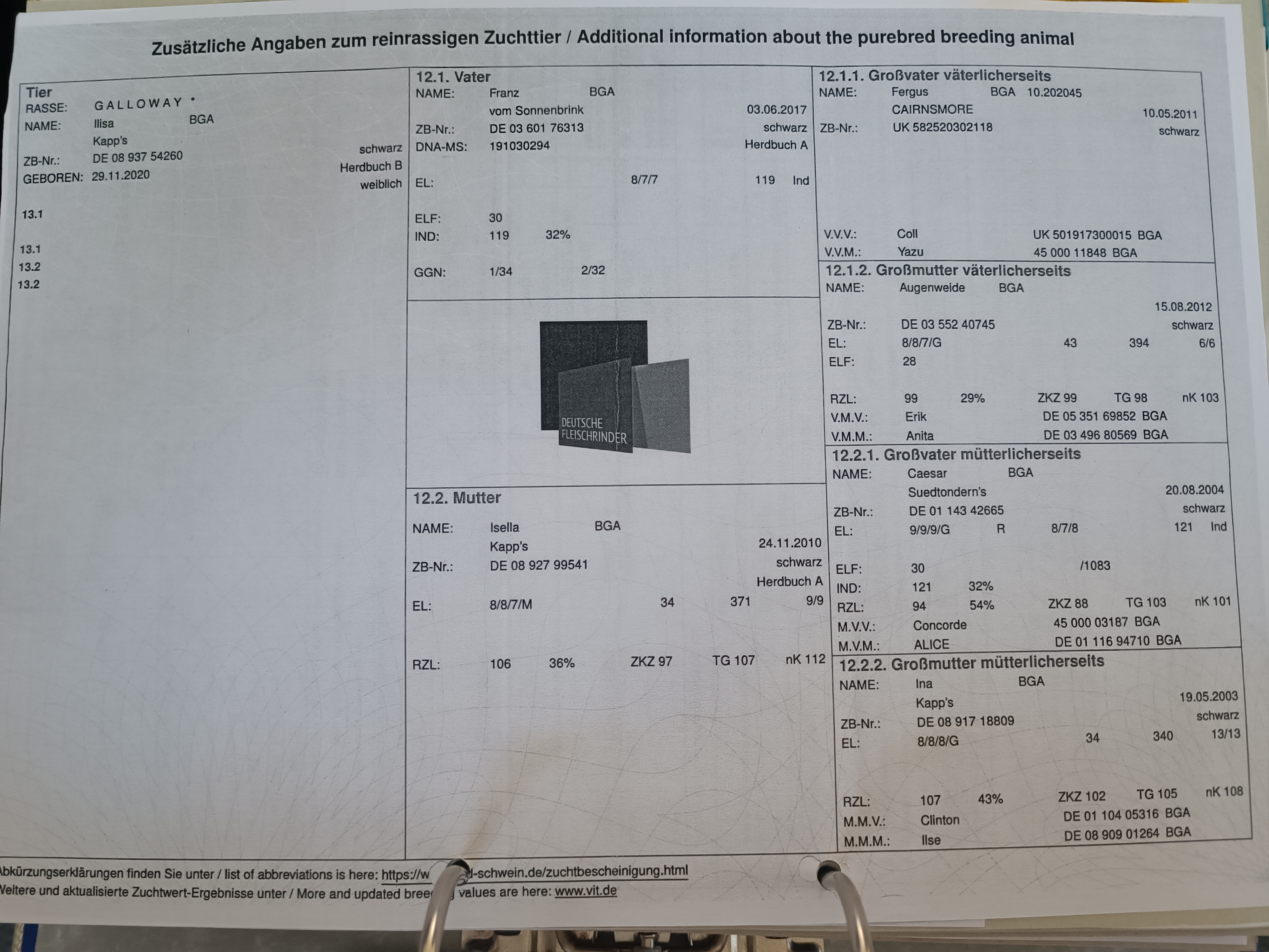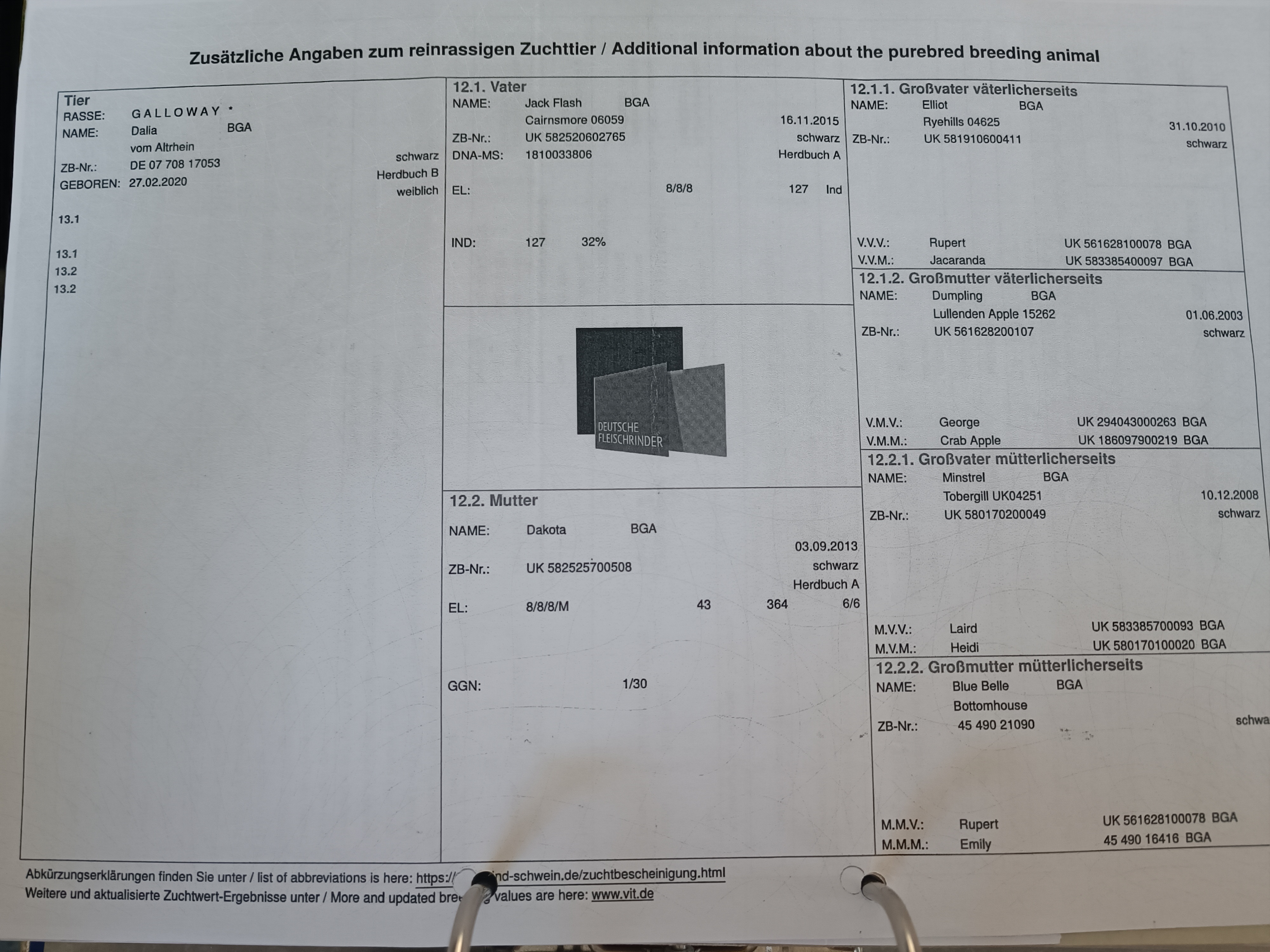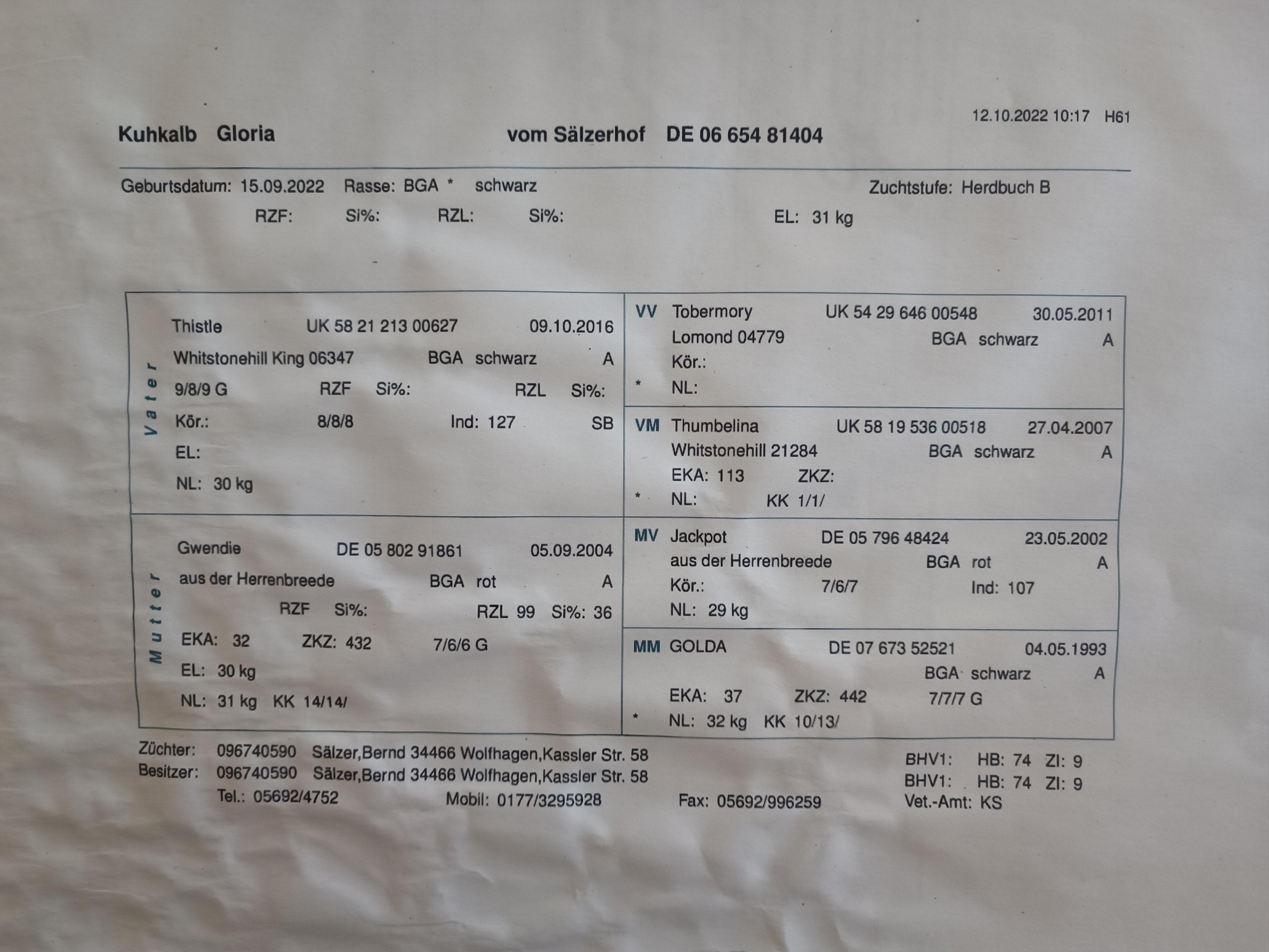 Ihre Tochter Gloria ist ebenfalls Bestandteil unserer Zuchtherde.