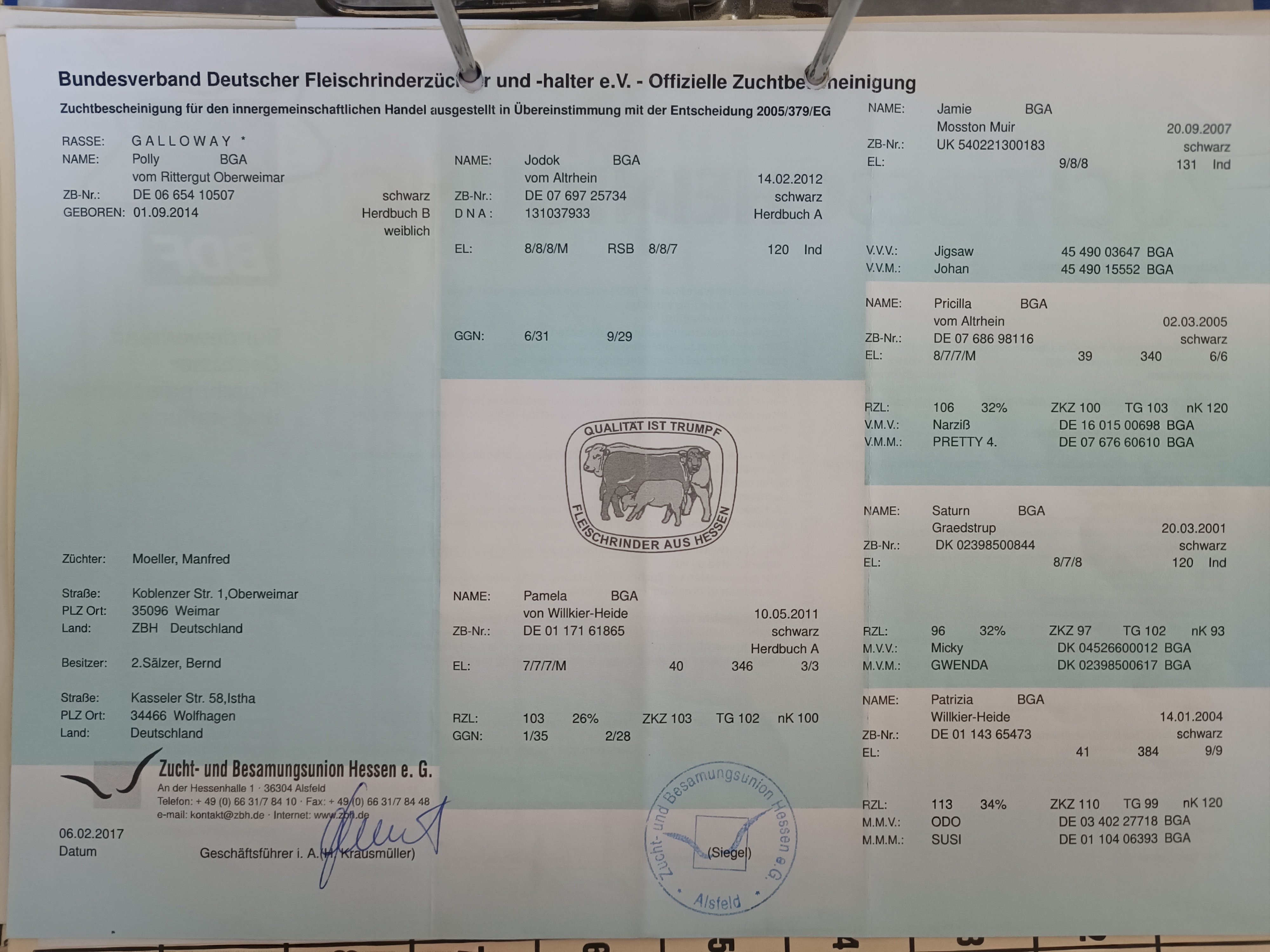 Polly ist unsere 1. Herdbuchkuh und wurde im September 2014 geboren.