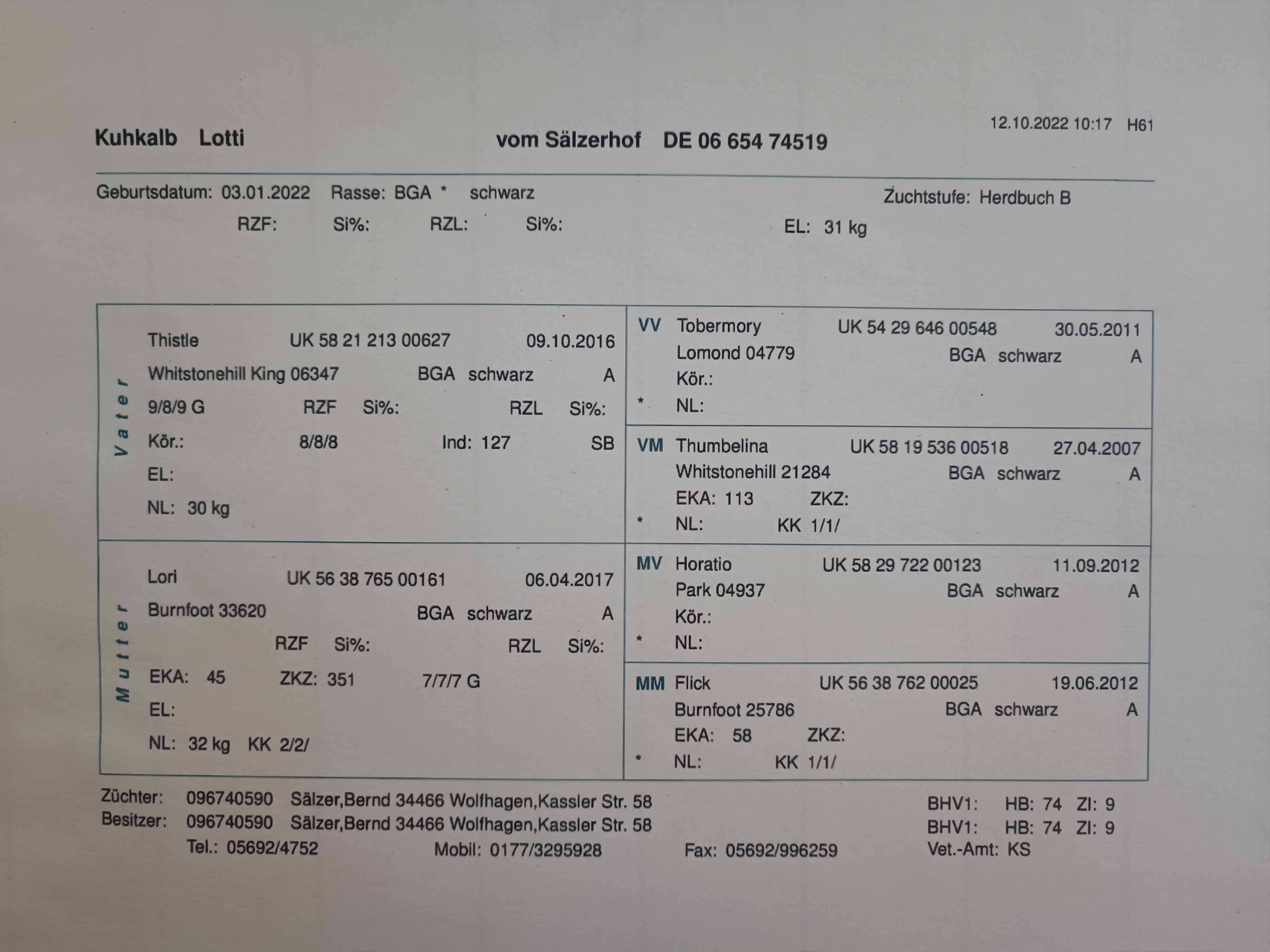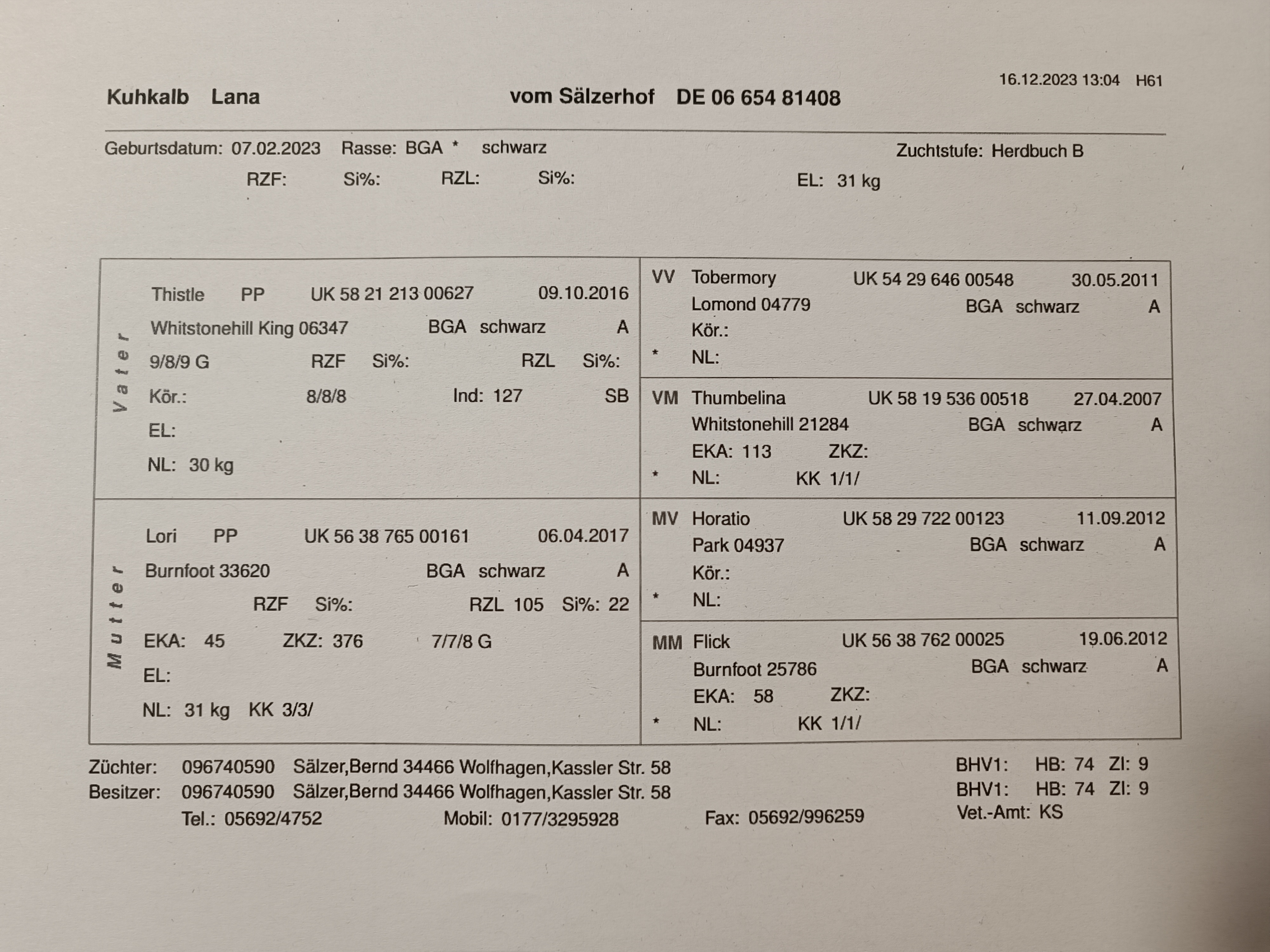Im November 2024 hat sie ihr zweites Kalb, Bullenklab Hans, geboren.