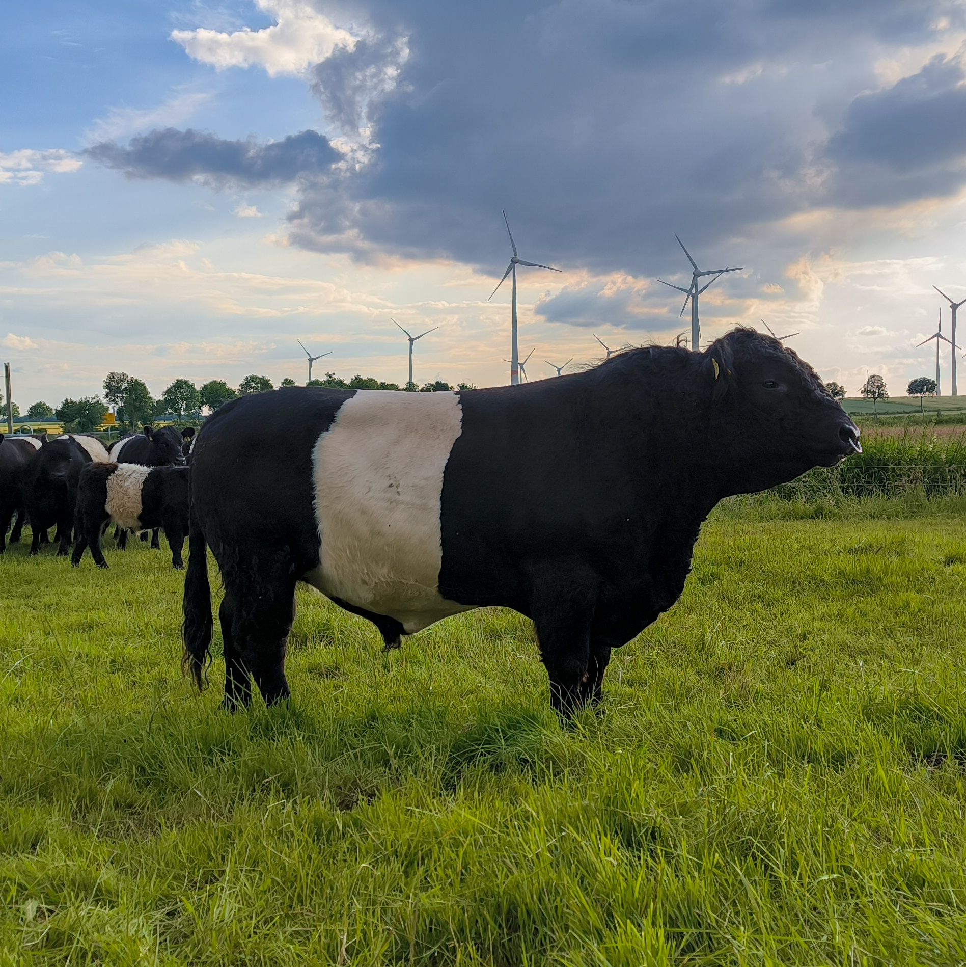 Unseren zweiten Zuchtbullen Hannibal haben wir im Januar 2022 von der Herdbuchzucht Belted Galloways vom Rennsteig der Familie Krey erworben.
